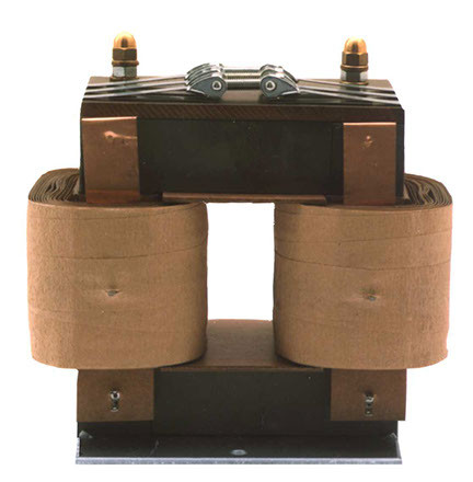 Ein einphasiger Transformator besteht aus einem magnetischen Kern, auf dem sich eine Primär- und eine Sekundärspule befinden. Diese zumeist aus isoliertem Kupferdraht gewickelten Bauteile sind nicht elektrisch leitend verbunden.